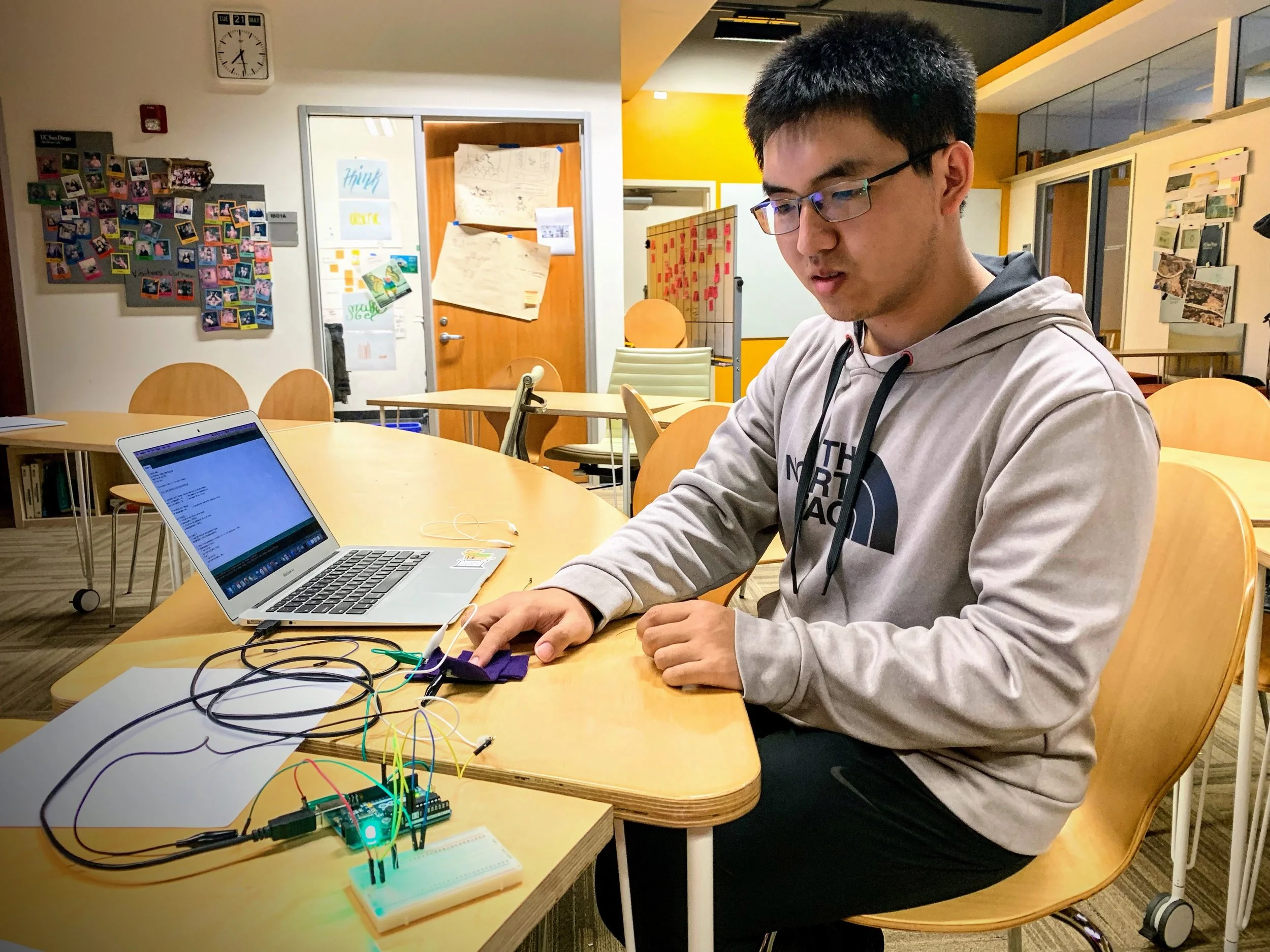 After that, they tested their sensor by connecting it to a circuit powered by an Arduino that would allow them to push the button to either turn an LED on or a vibration motor.